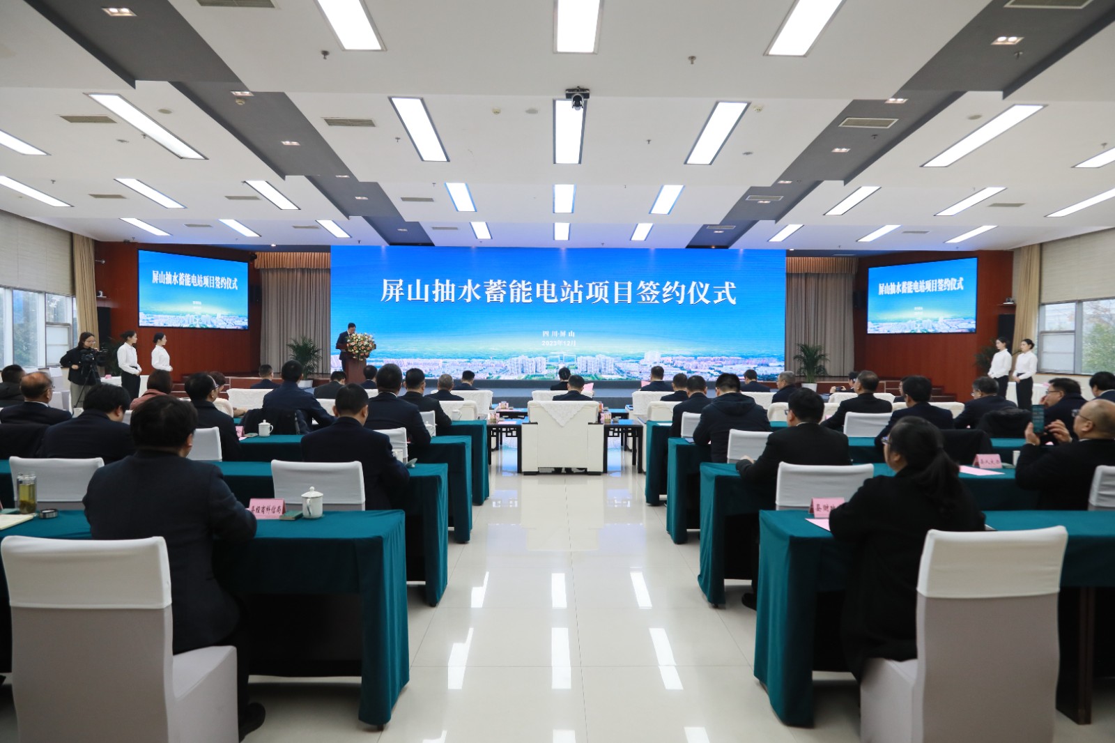 12月29日,屏山縣人民政府與四川川投能源股份有限公司、雅礱江水電開發(fā)公司、葛洲壩集團(tuán)聯(lián)合體簽訂屏山抽水蓄能電站項(xiàng)目投資合作協(xié)議。川投集團(tuán)黨委書記、董事長,川投能源董事長吳曉曦;川投集團(tuán)黨委副書記、副董事長、總經(jīng)理李文志;宜賓市委副書記曾令舉;市政府副市長周文宇;川投集團(tuán)副總經(jīng)理張昊;葛洲壩集團(tuán)三峽建設(shè)公司副總經(jīng)理許華;葛洲壩集團(tuán)市場投資開發(fā)部副總經(jīng)理李博;中國電建集團(tuán)成勘院副總經(jīng)理鞠其鳳;川投能源黨委書記、副董事長、總經(jīng)理?xiàng)詈?;川投集團(tuán)總經(jīng)理助理、戰(zhàn)投部部長田傳平;雅礱江水電開發(fā)公司副總工程師范林;市能源局副局長邵睿;屏山縣委書記代軍;縣委副書記、縣長趙丹;縣人大常委會主任冷遠(yuǎn)林;縣政協(xié)主席林敏;縣委副書記羅昕出席簽約儀式。