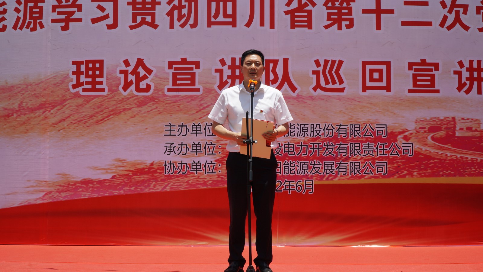 宣講在群山環(huán)繞、瓜果飄香、彩旗飄飄的電廠職工運(yùn)動場拉開帷幕。在開場致辭中,冉蘭平代表川投能源黨委向默默堅(jiān)守在甘洛縣玉田電廠的每一位干部職工表示感謝,也向電廠無私奉獻(xiàn)、艱苦奮斗,“舍小家為大家”的精神表示致敬。他指出,本次宣講旨在向電廠全體干部職工宣講習(xí)近平總書記來川視察重要講話精神和中國共產(chǎn)黨四川省第十二次黨代會精神,切實(shí)推動省十二次黨代會精神在基層落地生根。他要求,要學(xué)習(xí)領(lǐng)會好、宣傳宣講好、貫徹落實(shí)好省第十二次黨代會精神,將其作為當(dāng)前和今后一段時期重要政治任務(wù),進(jìn)一步增強(qiáng)“四個意識”、堅(jiān)定“四個自信”、做到“兩個維護(hù)”,為打造“國內(nèi)一流清潔能源上市公司”,推動治蜀興川再上新臺階不懈奮斗,以積極飽滿的實(shí)際行動和優(yōu)異成績迎接黨的二十大勝利召開。