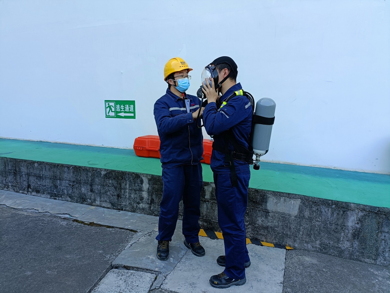 本次消防應急演練采用“先培訓,后示范,再實操”的形式進行。電廠消防安全工程師為全體員工講解了消防法律法規、消防常識、消防器材的使用、火災撲救與逃生和火災事故案例等消防安全知識,現場示范了正壓式呼吸器和滅火器的使用和注意事項。