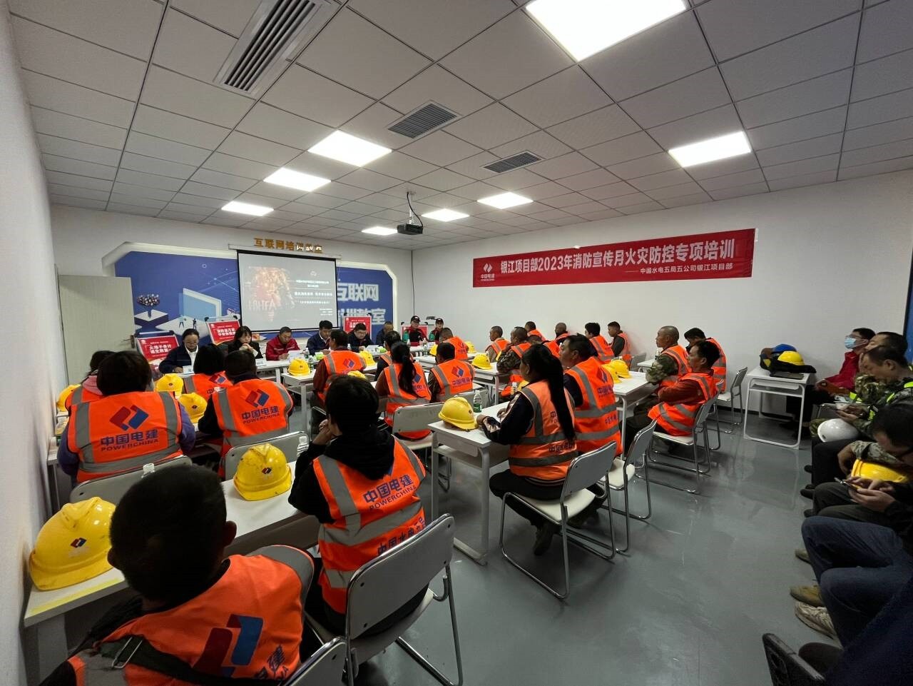 為有效遏制消防安全事故發生,切實增強參建單位的消防安全意識,提高作業人員應急疏散和逃生、自防、自救、互救能力,2023年11月22日-23日,攀水電公司聯合水電五局緊扣消防安全日“預防為主,生命至上”的主題,開展2023年消防宣傳月火災防控專項培訓,水電五局、佳友物業、槽漁灘相關人員參加培訓。