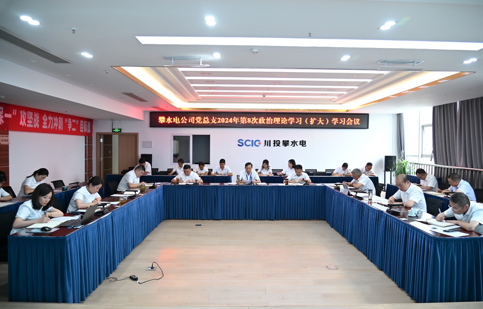 6月25日下午,攀水電黨總支在2620會議室召開了2024年第8次政治理論學習(擴大)會議,川投能源副總經理、攀水電公司黨總支書記、董事長徐孝剛主持會議,黨總支政治理論學習會成員、全體中干、支部書記、其他黨員、統(tǒng)戰(zhàn)對象、入黨積極分子共30余人參加學習。
