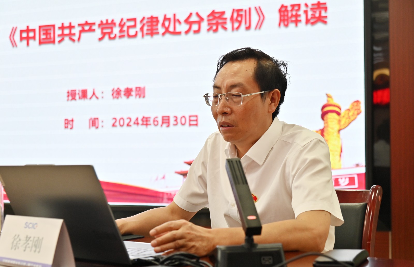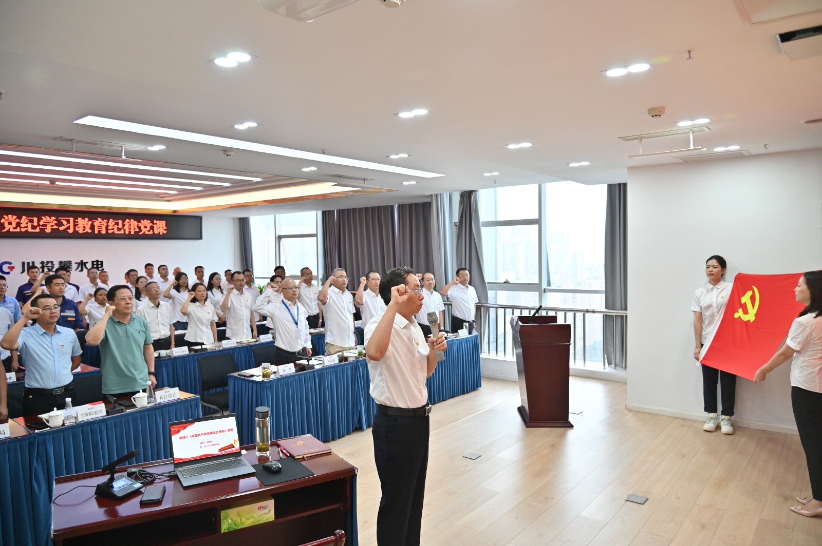 在全黨開展黨紀學習教育和黨的103歲生日來臨之際,按照川投能源黨委和攀水電黨總支的安排部署,6月30日上午,川投能源副總經(jīng)理、攀水電公司黨總支書記、董事長徐孝剛講授了黨紀學習教育紀律黨課并宣講省委十二屆五次全會精神,公司全體員工、參建單位負責人及黨員代表共計50余人參加。
