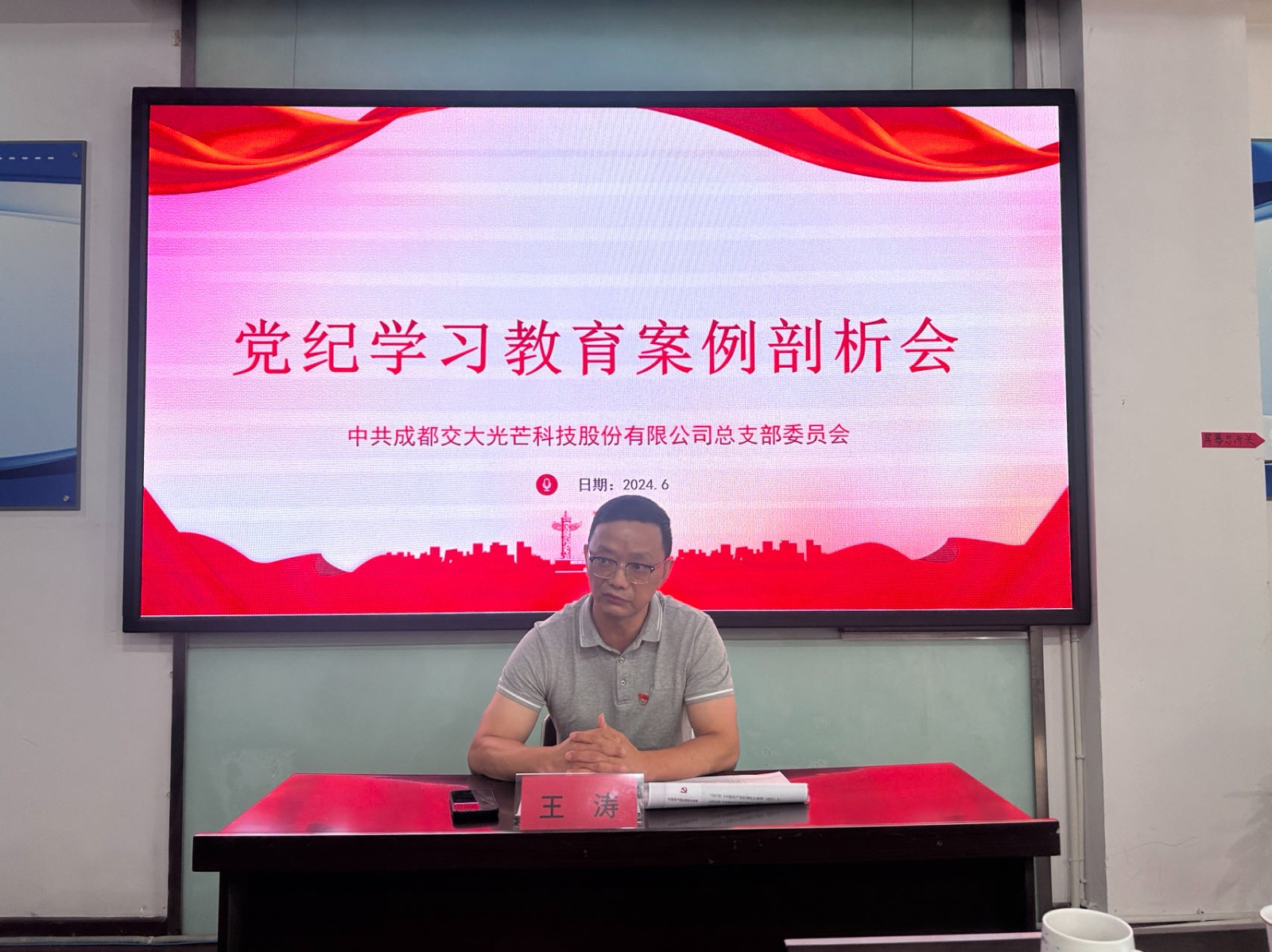 為認(rèn)真貫徹黨中央和省委關(guān)于開展黨紀(jì)學(xué)習(xí)教育的部署要求,交大光芒黨總支于6月28日開展2024年黨紀(jì)學(xué)習(xí)教育專題警示教育。公司領(lǐng)導(dǎo)班子成員、中層副職以上管理人員及全體黨員參加本次大會(huì),會(huì)議由公司黨總支書記、常務(wù)副總經(jīng)理王濤主持。