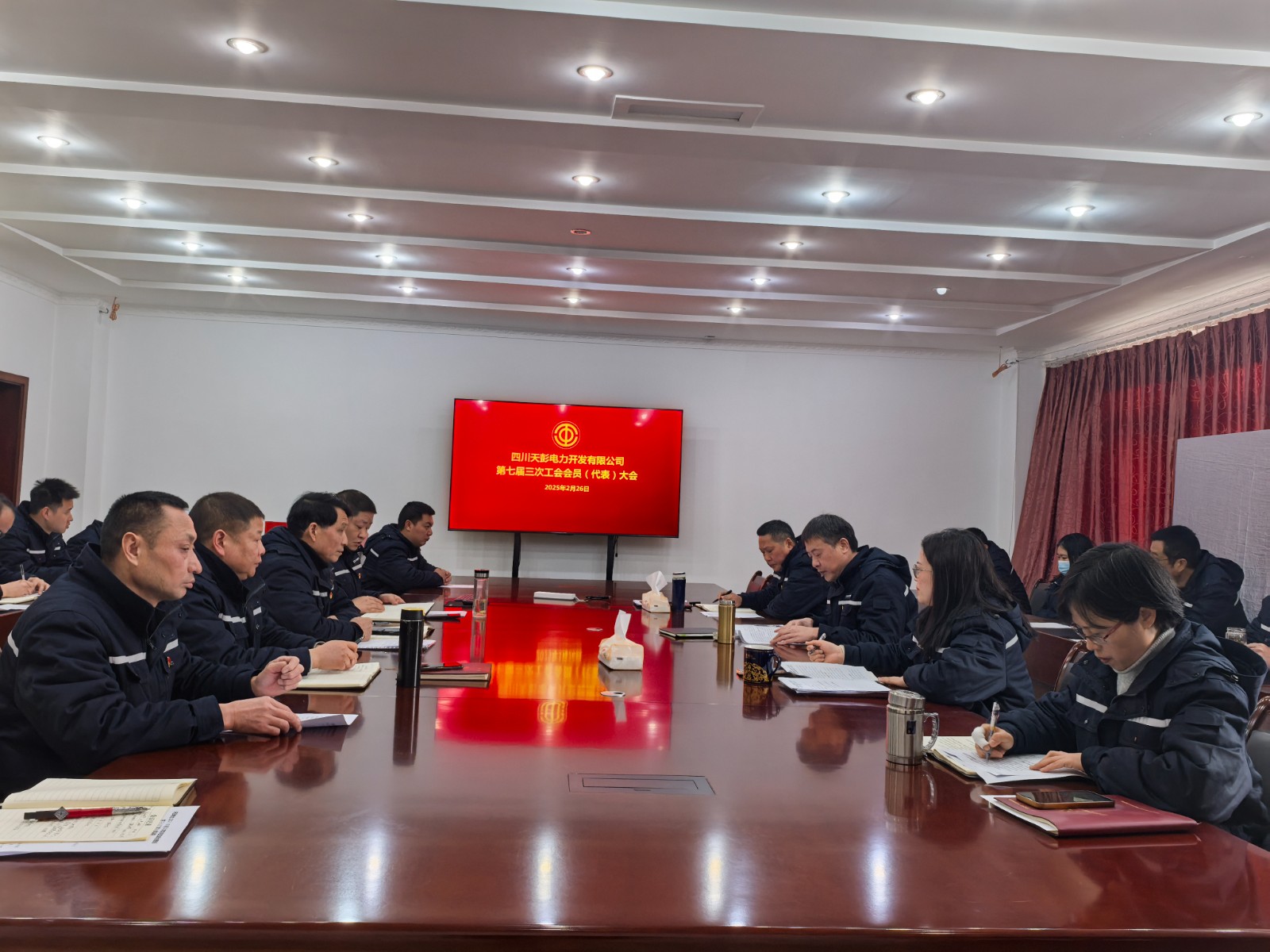 2月26日,川投電力所屬天彭電力公司召開第七屆三次工會會員(代表)大會,25名與會代表齊聚一堂建言獻策,同心繪制好公司的發展藍圖。會議由公司黨總支委員、紀檢小組長、工會主席汪曉力主持。