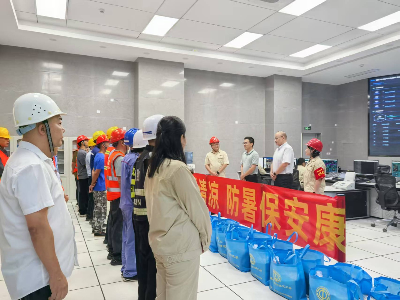 慰問現(xiàn)場,張平首先向銀江水電站一線人員表示親切的問候,對大家在高溫酷暑下堅(jiān)守崗位、辛勤工作的精神表示高度的贊揚(yáng),叮囑大家一定要保證安全建設(shè)、安全生產(chǎn),全面做好各類防護(hù)措施,注意自身安全和健康。希望攀水電公司能夠繼續(xù)發(fā)揚(yáng)優(yōu)良傳統(tǒng),牢固樹立以人為本的理念,壓實(shí)安全管理責(zé)任,認(rèn)真落實(shí)安全生產(chǎn)月活動(dòng)要求,密切關(guān)注氣象預(yù)警,嚴(yán)格執(zhí)行高溫天氣作業(yè)規(guī)定,切實(shí)維護(hù)廣大職工的勞動(dòng)安全健康權(quán)益,做好防暑降溫服務(wù)工作,在銀江水電站形成人人抓安全、人人擔(dān)責(zé)任的良好氛圍,切實(shí)筑牢安全生產(chǎn)防線。