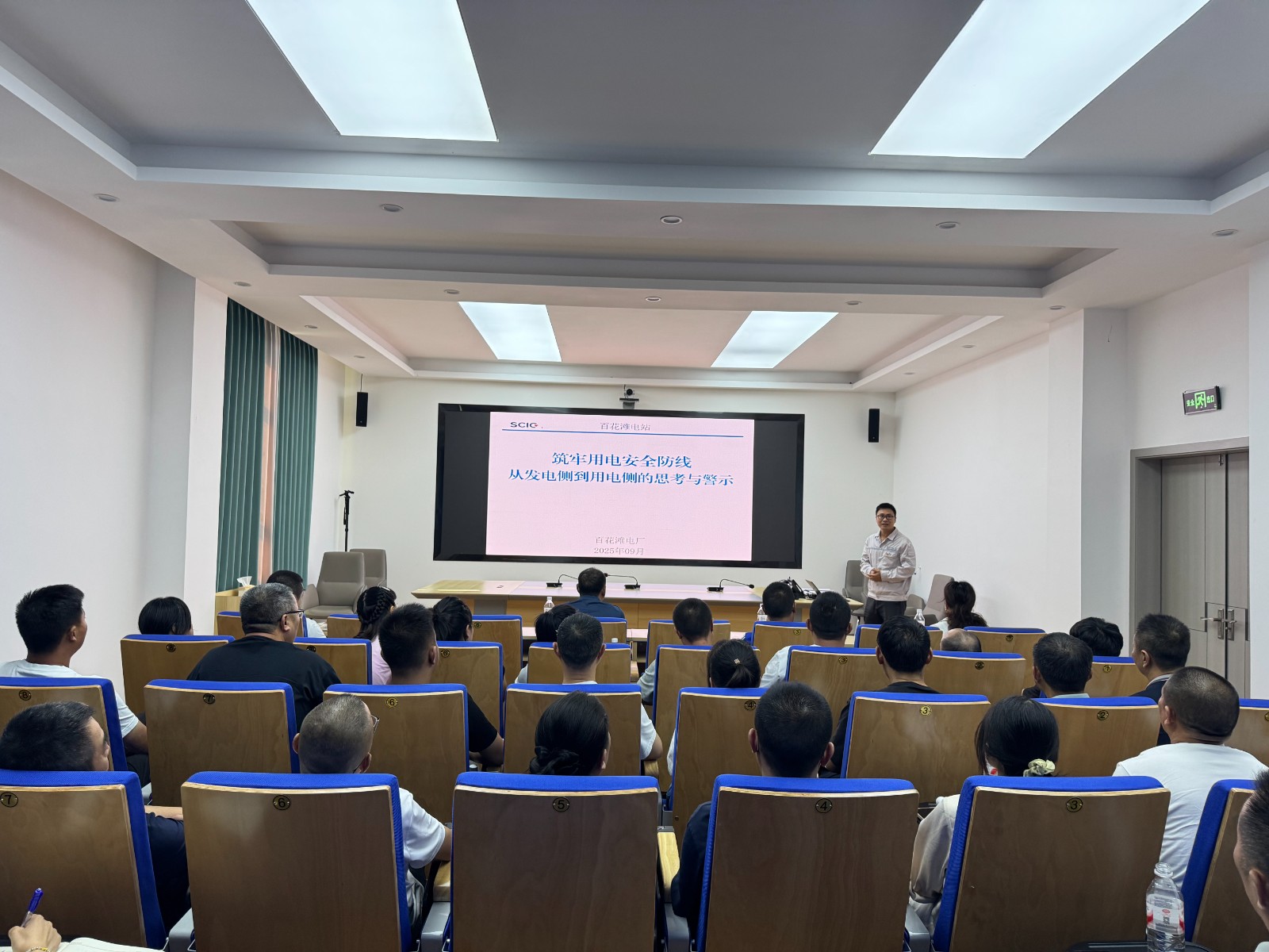 近日,應洪雅縣應急管理局誠摯邀請,百花灘電廠發(fā)電部經(jīng)理吉超,在洪雅縣 “2025年第三季度工業(yè)企業(yè)安全穩(wěn)定工作會議”上,為參會的各工貿(mào)行業(yè)人員開展了一場內(nèi)容詳實、實用性強的用電安全知識培訓,為全縣工業(yè)企業(yè)筑牢用電安全屏障注入專業(yè)力量。